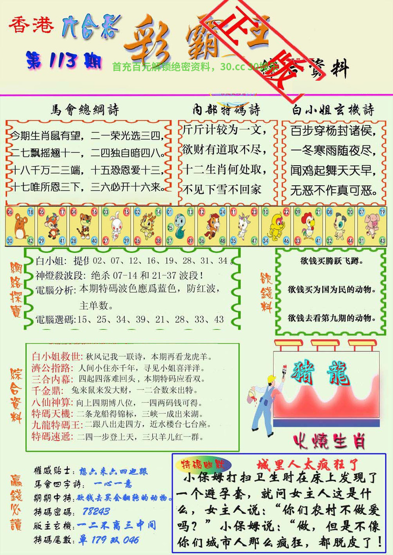 112期:☀平特三肖☀♠【马+鸡+】♠